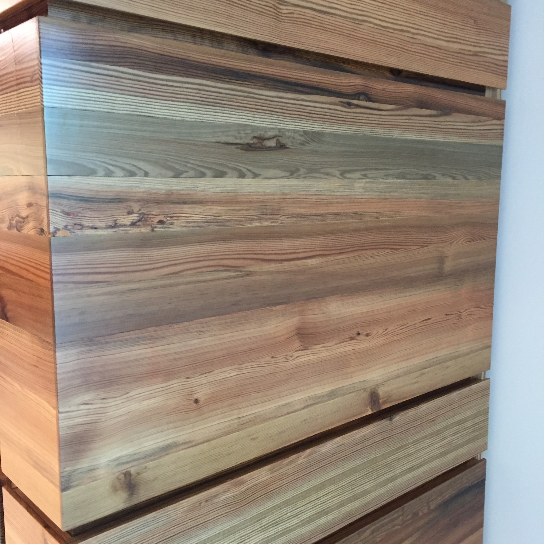 From riverbed to wall, these sinker cypress river logs were hauled ashore so as not to interrupt the new marina being built. We reclaimed the sinker river logs, preventing them from being carried away, hand-sorted each trunk for sound heartwood and river patina. This was not an easy endeavor, with permitting required, on-site rigging, and milling. Each log had to be inspected for density, grain, embedded debris, and salvage condition. Power-washed, kiln-dried, milled, resawed, and flattened to wallboard blanks while controlling moisture and grain orientation. Plane, sand, profile, and apply specified surface treatments to achieve the required finish and dimensional tolerances. By reclaiming sinker cypress one block from the architect's office, we cut embodied carbon, spared new harvests, and returned river-found timber to purposeful use.