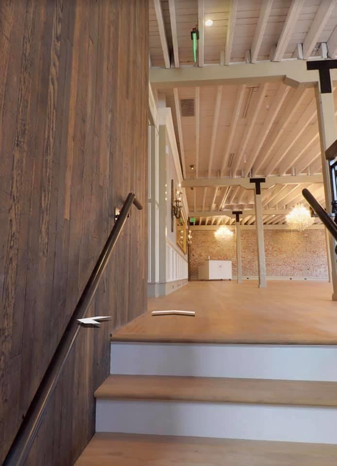 THE PAIRING OF REFINED FLOORING AND RECLAIMED WALLBOARD BALANCES INDUSTRIAL BONES WITH CONTEMPORARY RESTRAINT, CREATING AN INTIMATE, ADAPTABLE SETTING FOR CEREMONY AND CELEBRATION.