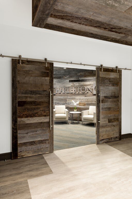 In this project, we transformed reclaimed barnwood into walls, ceilings, and doors across a medical pavilion. Salvaged boards were stabilized, finished to reveal patina and grain, and integrated with healthcare-grade systems to deliver warmth without compromising hygiene or durability. Reclaimed wood introduces natural warmth, softer acoustics, and a sense of rootedness that supports patient comfort and staff well-being.